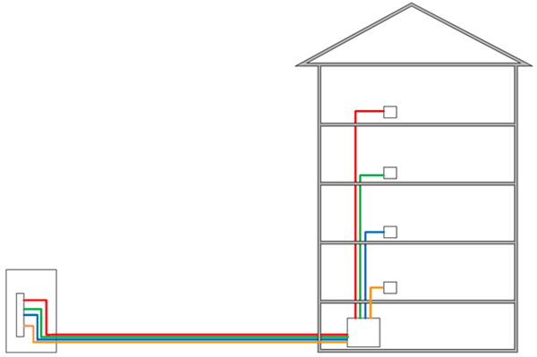 In kleineren Häusern übernehmen meist die Glasfaser-Anbieter die Verkabelung bis in die Wohnungen noch mit. Meist wird dies jedoch auf eine maximale Kabellänge von 20 Meter begrenzt.